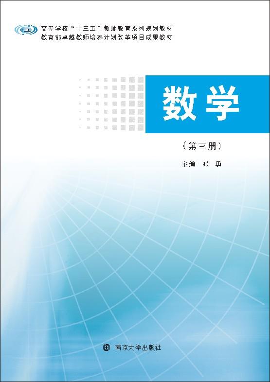 - 数学(第三册) 作者:邓勇 定价:47.00 本书是为五年制师范院校学生编写的教材,主要内容为:第一章平面向量,包括平面向量的基本概念、基本运算等;第二章三角恒等变换,包括两角和与差的三角函数、倍角公式、解...