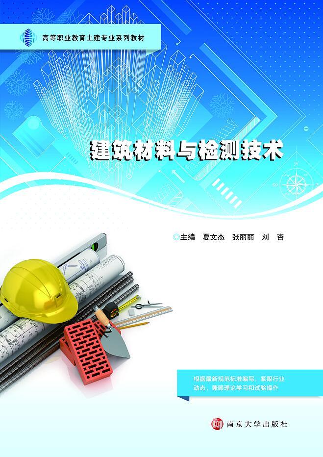 - 建筑材料与检测技术 作者:夏文杰,张丽丽,刘杏 定价:45.00 本教材反映当前建筑工程行业实际应用建筑材料及检测技术的最新动态,依据我国最新修订的建筑材料技术标准和相关规范编写,内容主要包括:绪论、建筑材料的基本性质、胶凝材...