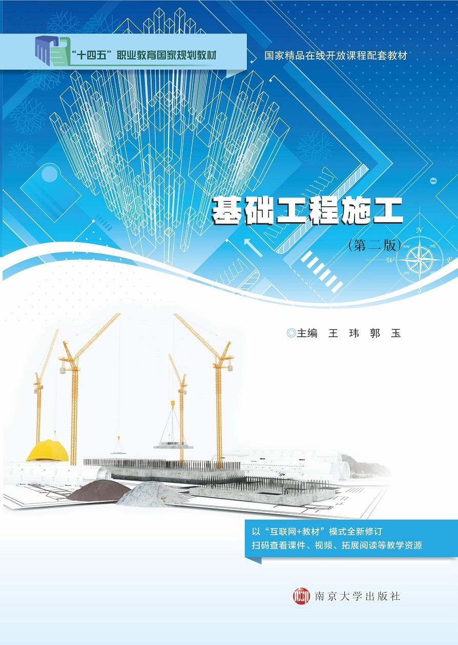 - 基础工程施工 作者:王玮,郭玉 定价:58.00 本书以地基基础施工工作过程为导向,按照施工技术人员典型任务组织教学单元,形成了以地质勘察报告地识读、塔吊基础安全计算、基坑工程施工、基础工程施工、桩基础施工、地...