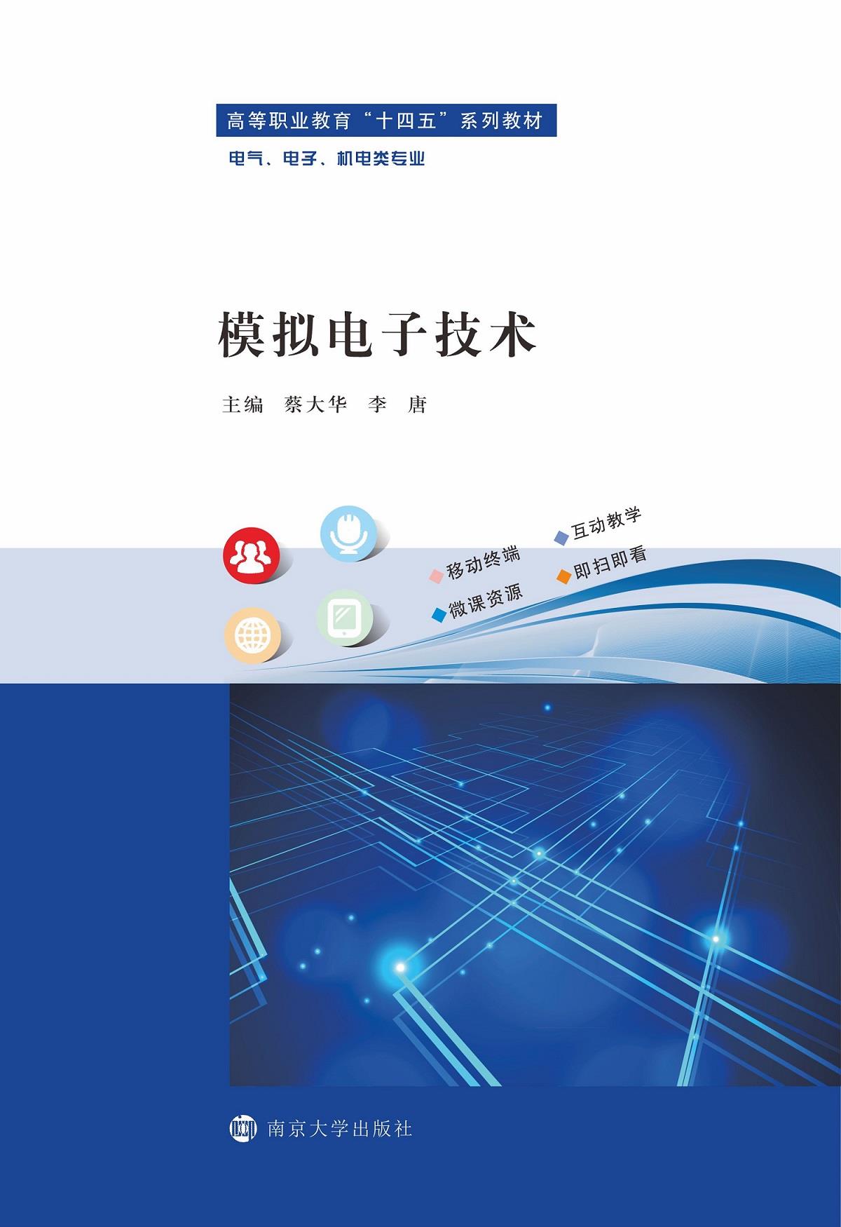 - 模拟电子技术 作者:蔡大华,李唐 定价:44.00 《模拟电子技术》是自动化类、电子信息类及通信类专业的一门重要的技术基础课程。通过本门课程的学习,学生能够掌握电子器件功能及应用、模拟电子电路分析应用、进行典型电...