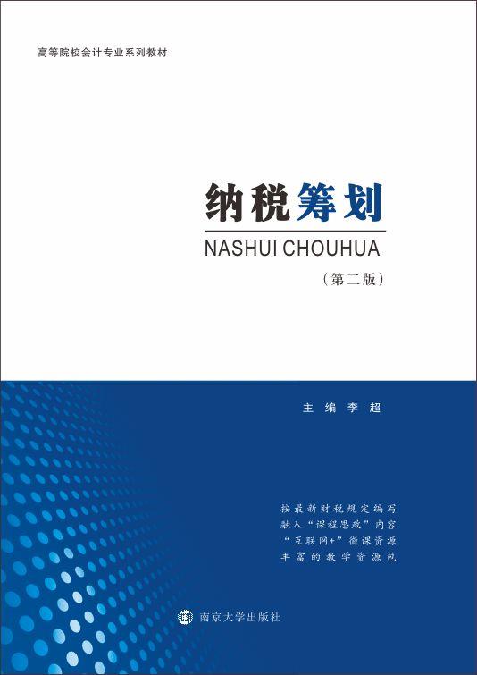 纳税筹划 作者:李超 定价:46.00 本教材系统阐述了纳税筹划的各个方面内容,全书分为九章:第一章介绍纳税筹划的概述,包括纳税筹划的概念与特点,原则与目标,总体掌握纳税筹划产生的原因与效应;第二章从...