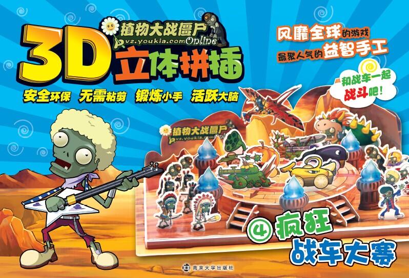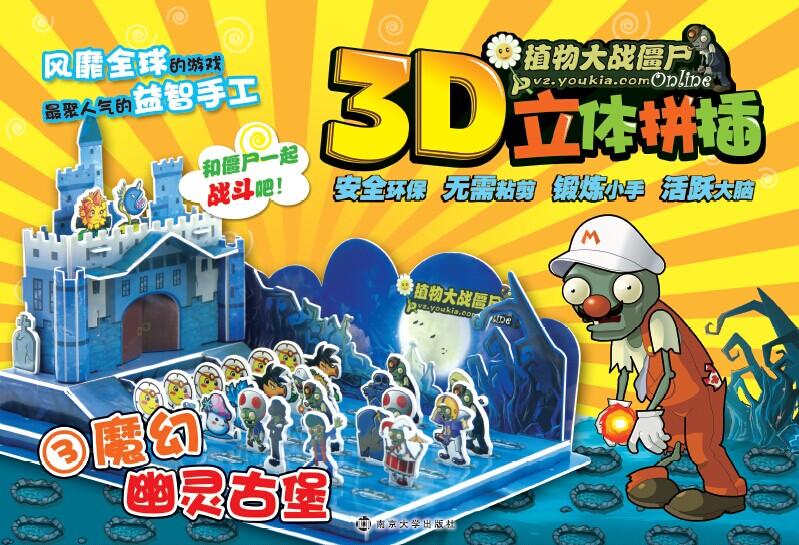 本系列拼插书以《植物大战僵尸online》中的形象和场景为素材,设计立体手工拼插。生动的场景再现,丰富的植物和僵尸形象。