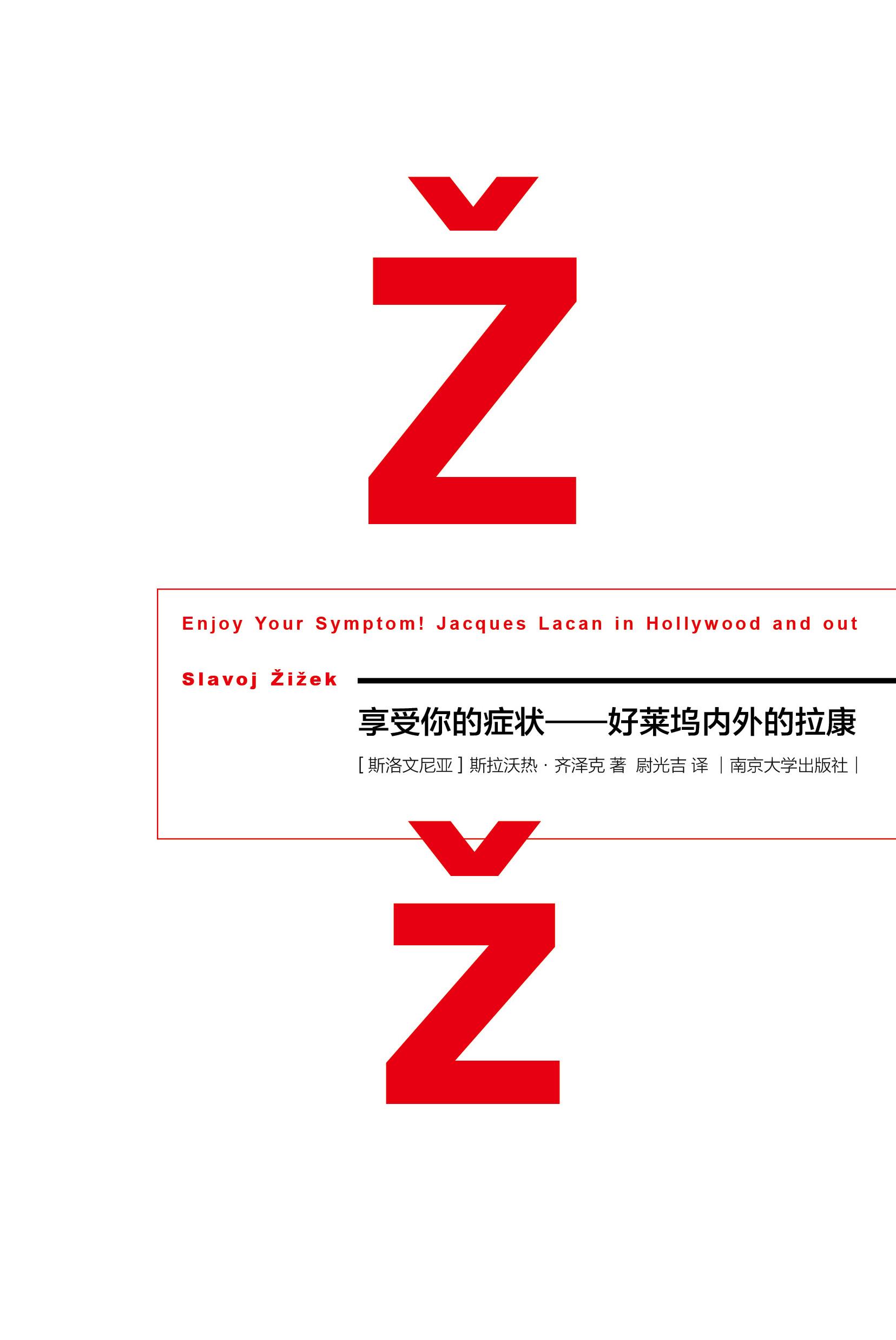 享受你的症状!——好莱坞内外的拉康 作者:[斯洛文尼亚]斯拉沃热?齐泽克著 尉光吉 译 定价:35.00元 本书是齐泽克通过好莱坞电影来分析美国大众文化,进而介绍拉康的学说的一本文化批评著作。书中分析了好莱坞电影的种种“症状”--为什么一封信总是能达到预期目的,死亡和...